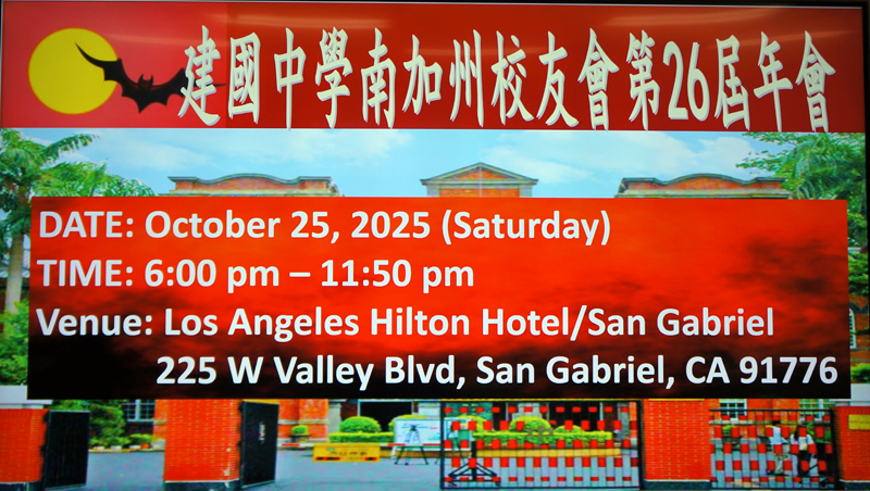 【洛杉磯訊】建國中學南加州校友會將於2025年10月25日,