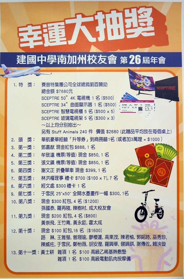 關鍵詞: 建國中學南加州校友會,建國中學南加州校友會第26屆年會,建國中學南加州校友會會長牟致遠,海外金磚永續獎學金