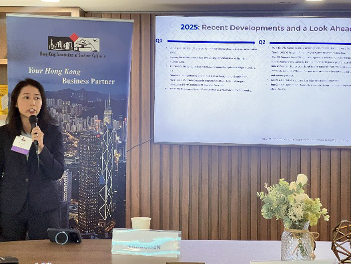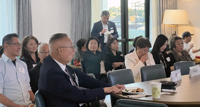 香港貿易發展局 (Hong Kong Trade Development Council) 洛杉磯代表 Chi Tran 也分享在香港投資及創業的機會,提供了寶貴的市場資訊,幫助來賓深入了解香港作為全球商業樞紐的優勢。南加州香港商會會長鄧偉信(Wilson Tang)回顧過去一年商會的成果,並欣然宣布 2025–2027 年度董事會重選順利完。商會感謝全體會員的積極參與與支持,並對連任董事們的貢獻與承諾表達誠摯的肯定。
