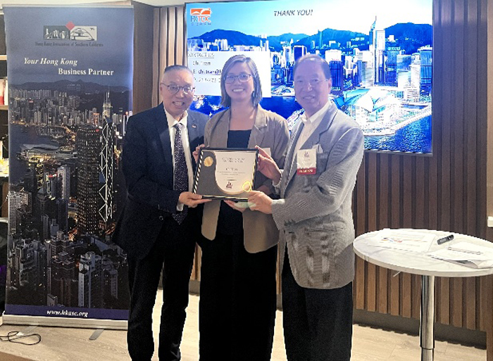 香港貿易發展局 (Hong Kong Trade Development Council) 洛杉磯代表 Chi Tran(中)獲頒感謝狀