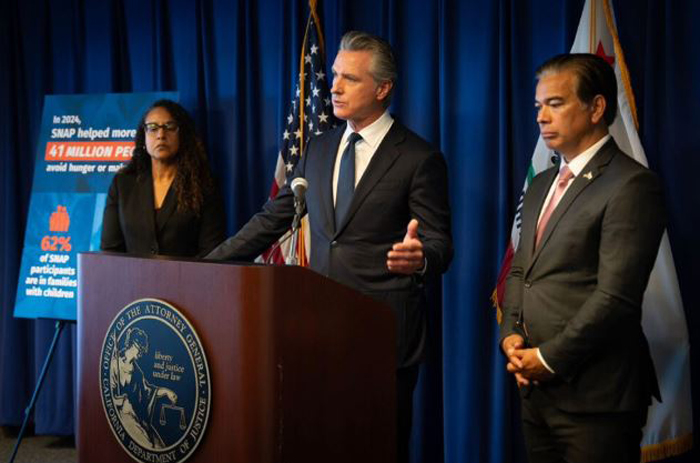 【美新社讯】10月28日周二,加州州长纽森(Gavin Newsom)和加州司法部长/总检察长罗伯·邦塔(Rob Bonta)宣布,加州与其他 20 多个州一起起诉特朗普政府,指控其因联邦政府近一个月的停摆而非法拒绝为 SNAP(补充营养援助计划)提供资金,尽管政府有资金在11月继续支持 SNAP。