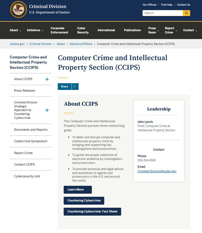 司法部 CCIPS 与国内外执法机构协调,调查和起诉网络犯罪,并经常得到私营部门的协助。CCIPS 领导着司法部打击勒索软件的行动。自 2020 年以来,CCIPS 已成功将 180 多名网络犯罪分子定罪,并获得了法院判决,追回了超过 3.5 亿美元的受害者资金。
