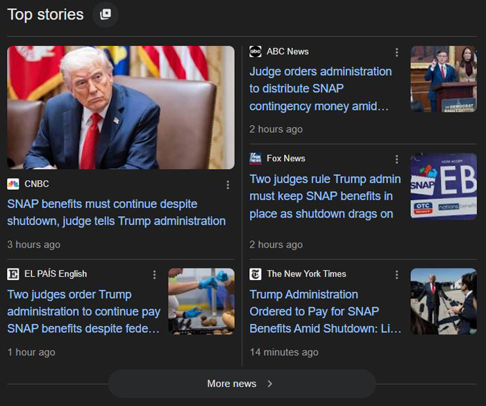 据悉,马萨诸塞州和罗德岛州的两位联邦法官在10月31日先后作出裁决,命令农业部动用 52.5 亿美元的应急资金来继续发放 SNAP 福利。