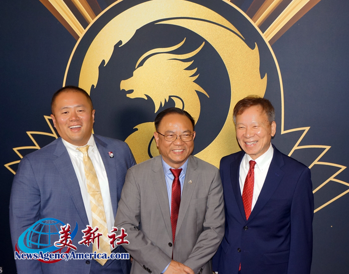 (左起)天普市市議員陳祥寧(Ed Chen)、邓洪律师、洛杉矶巴尔地摩千禧酒店业主代表及资产管理人,吴忠国(Jimmy Wu)