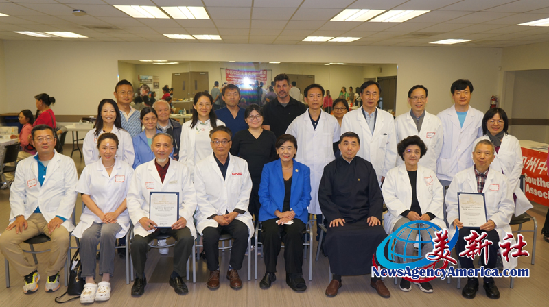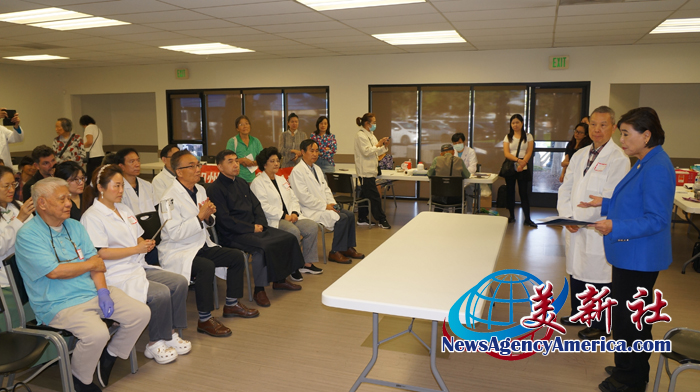 加州参议员 Sasha Renée Pérez 虽未能亲临现场,也委派地区代表 Elaine Pang 到场颁发加州参议院褒奖证书,授予徐凡凯、李光求、莊凰玲、黄铃薰等中医师多年持续奉献参与中医义诊。