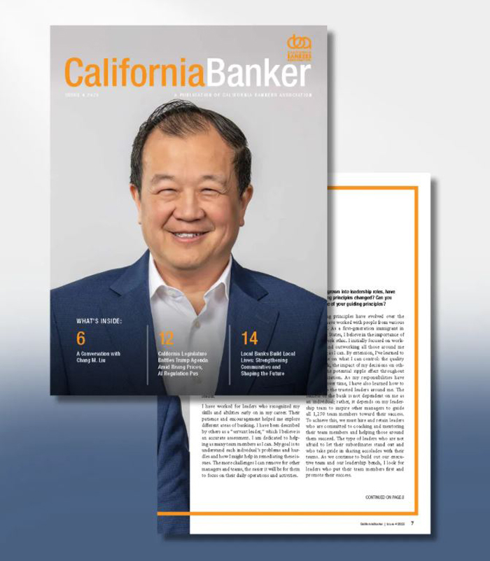 在最新一期的《加州银行家》(California Banker)杂志中,国泰银行总裁兼首席执行官刘昌明(Chang M. Liu)先生分享了他的领导理念、银行以社区为本的发展模式,以及国泰银行如何在瞬息万变的金融环境中平衡传统与创新。