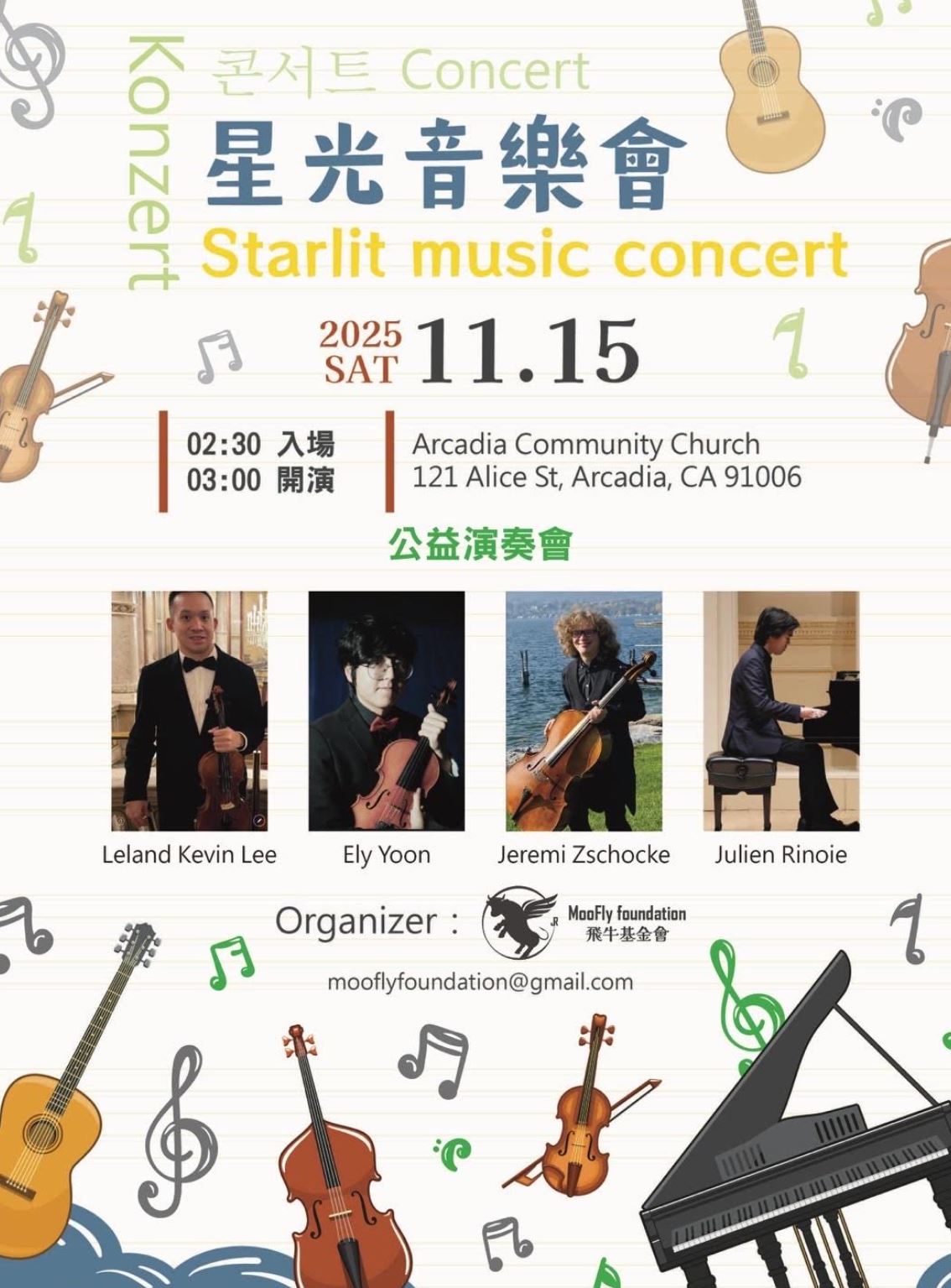 【美新社訊】11月15日傍晚,在 Arcadia Community Church 的柔和燈光下,一場滿載希望與愛的公益音樂會「星光音樂會 Starlit Music Concert」悄悄點亮了無數家庭的心。