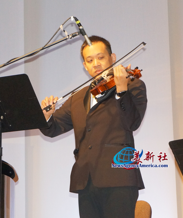 專門從台灣趕過來的Leland Kevin lee 握著小提琴站上舞台,當琴弓落在弦上,第一聲音色細膩而鋒利,像一道光穿透雲層。旋律時而輕柔像悄悄的低語,時而高昂如孩子突破自我的吶喊。琴音在空氣中飛舞,彷彿把他成長路上的跌倒與站起,一次次樂音化成羽翼。