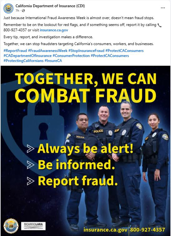 相关公告(加州保险局(California Department of Insurance)社交媒体图片)