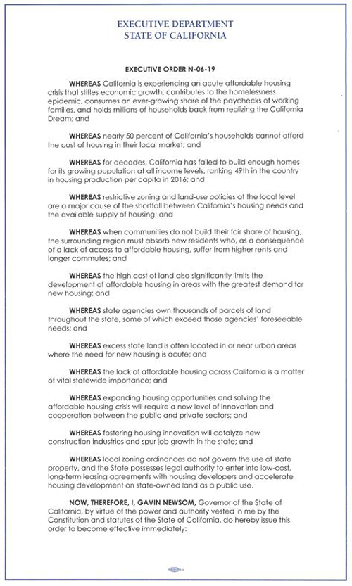 2019年州长行政令(加州州长纽森办公室图片)