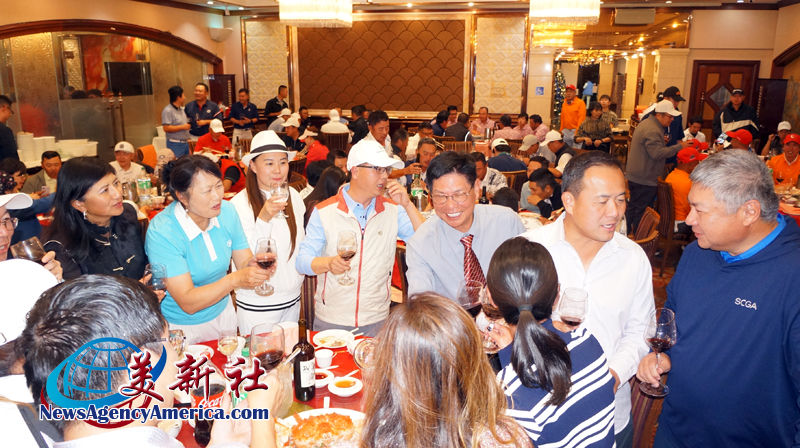 当晚,美国经贸国际总商会创会会长、NGY Sports Club 主席暨 NGY 集团董事长苏夏强(Steven Su)、美国经贸国际总商会新任会长、NGY 集团总裁 Sean 苏,与近 200 位洛杉矶侨、商界精英,高尔夫球同好欢聚一堂,举杯同庆这一历史时刻。