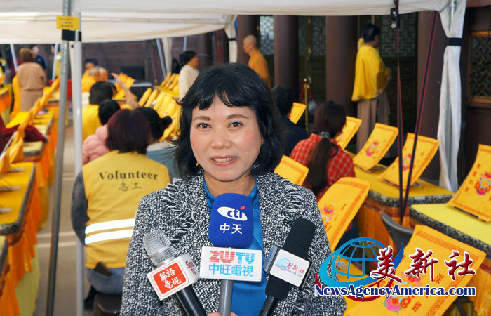 與會信眾吳光玲女士也分享其學佛的心路歷程。她表示,學佛十餘年,讓她對因果業報越來越深信,因此在面對人生逆境時能以平常心應對,並以古德的一句話自勉:『面對惡果坦蕩蕩,如履薄冰種善因。』她感恩佛菩薩的慈悲加持,此生有幸得遇如來正法、得遇古佛降世,使她能夠在學佛路上持續精進、法喜充滿。