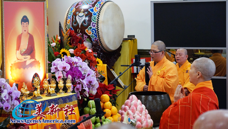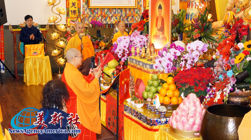 【洛杉磯訊】12月21日,為恭迎西方極樂世界教主南無阿彌陀佛佛誕,世界佛教總部(W.B.A.H.)、聖蹟寺(Holy Miracles Temple)、弘法寺(Hongfa Temple)以及聖格講堂(Sanger Mission)四大佛教機構,在洛杉磯帕薩迪納市的聖蹟寺大雄寶殿聯合啟建莊嚴殊勝的佛誕法會。法會由世界佛教總部副主席證達教尊主法,十方善信踴躍參與。