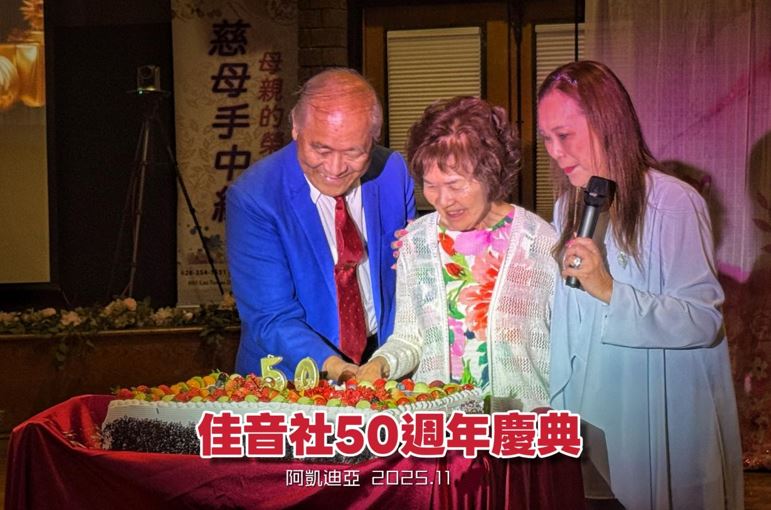 北美首个华语广播“今日佳音”的创办机构——佳音社,日前在亚凯迪亚市社区中心举行成立50周年庆祝庆典。活动现场座无虚席,吸引了超过200位来自政界、商界、教育界、传媒界与文化单位的华人代表,以及佳音社历届成员、义工和忠实听众共同参与。与会者在笑声、掌声与回忆中重温佳音社的成长历程,也真切感受到北美华人社区五十年来从信息匮乏到媒体繁荣的巨大变化。