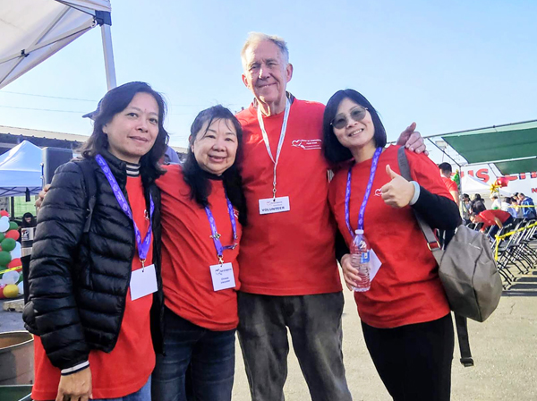 南加州婦女全福會總會會長李小燕(圖右),多年來始終堅持親自帶領家人與教會志工投入服務行列。對她而言,公益不只是一項活動,而是一種生命的傳承。因此,她也將孩子一同帶到現場,讓下一代在真實的互動中學習同理、看見需要,親身感受「付出本身,就是一種祝福」。