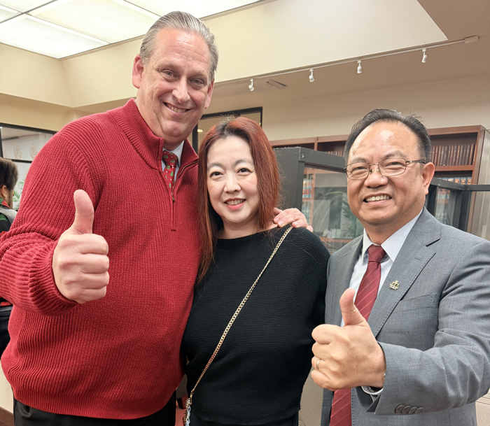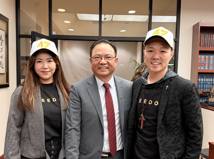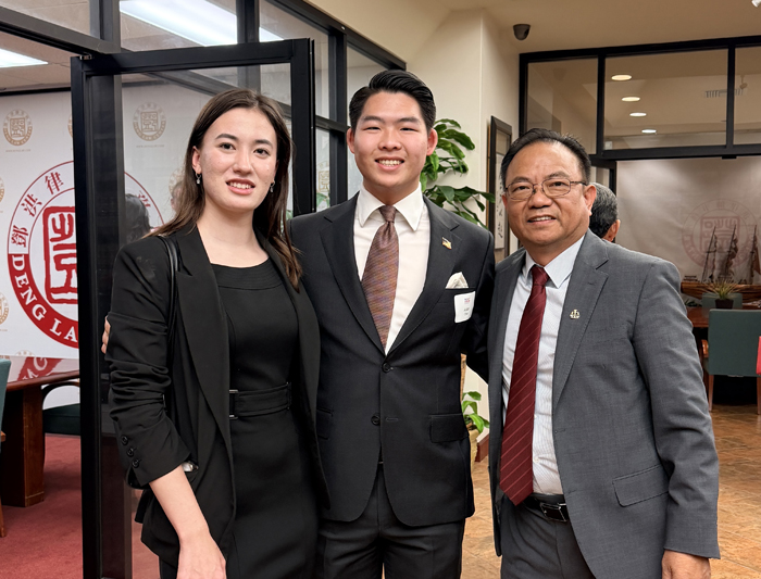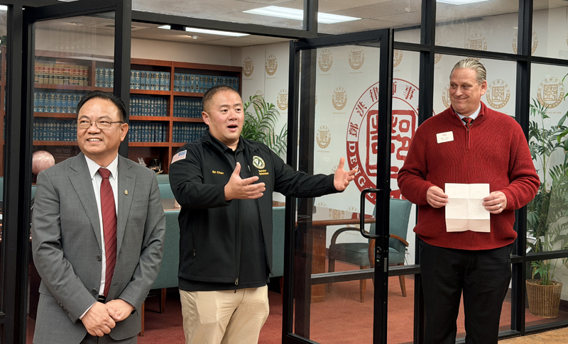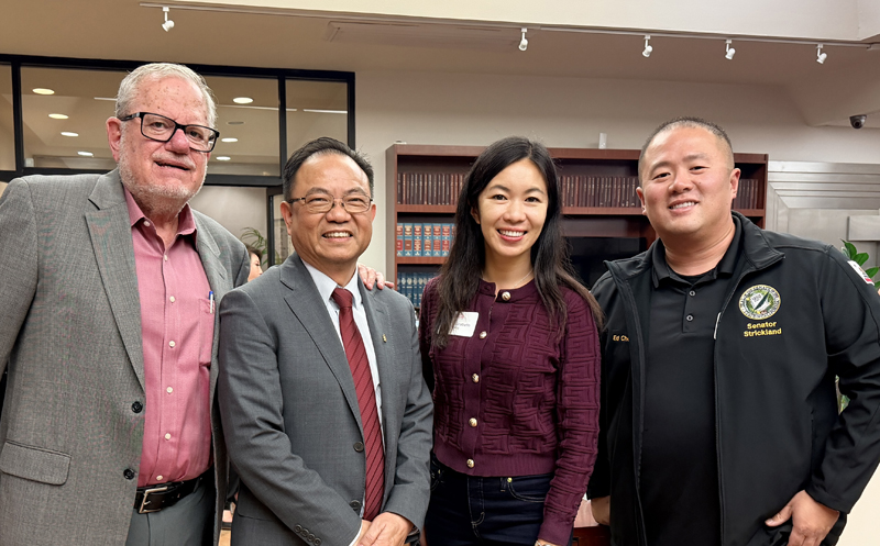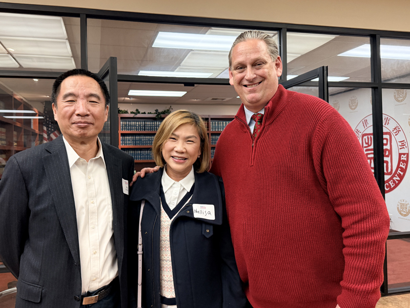 (左起)邓洪律师、天普市市议员陈祥宁(ED CHEN)、加州共和党参议员斯作兰德(TONY STRICKLAND)