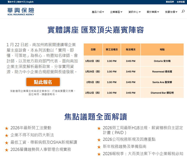 關鍵詞: 華興保險,KCAL Insurance,加州中小企業雇主座談會