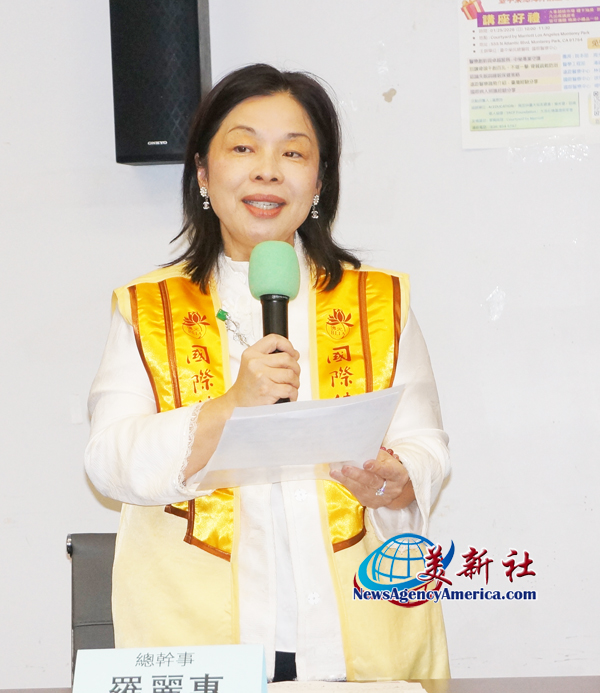 本次講座四位活動總幹事之一、橙縣場負責人羅麗惠,她同時也是橙縣場地的贊助單位Embassy Suites by Hilton Santa Ana的負責人,本次活動合辦單位國際佛光會新港分會的代表,以及 MHG Charitable Foundation創始人。羅麗惠表示,對能促成這場健康講座深感榮幸。