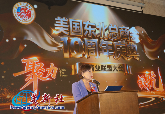 最后,赵美心国会众议员祝愿美国东北总商会在新任会长朱京一的领导下,会务蓬勃发展,更上一层楼。