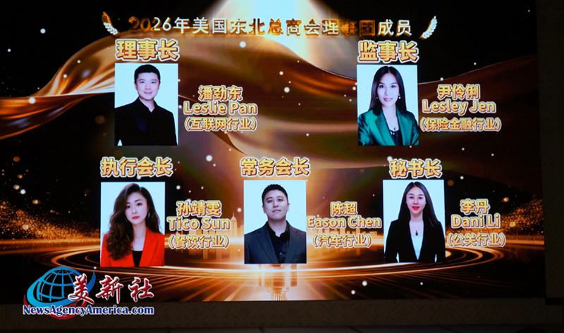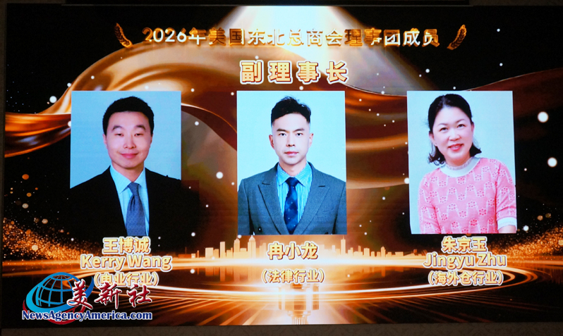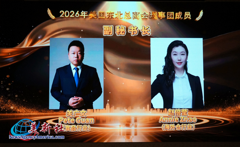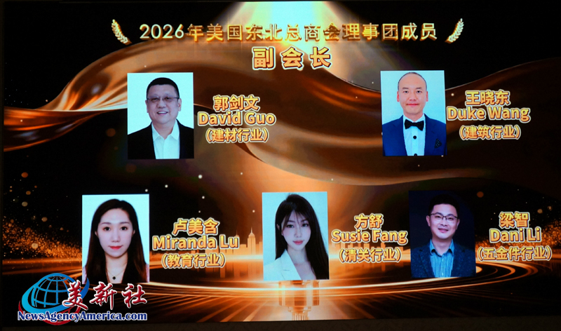 此外,刘国瑞、段会强、Alice Gao、林颖、周峰、王长胜、菲比 许、Kitty Liu、张荣刚等,也荣获2026年美国东北总商会荣誉会长聘书。