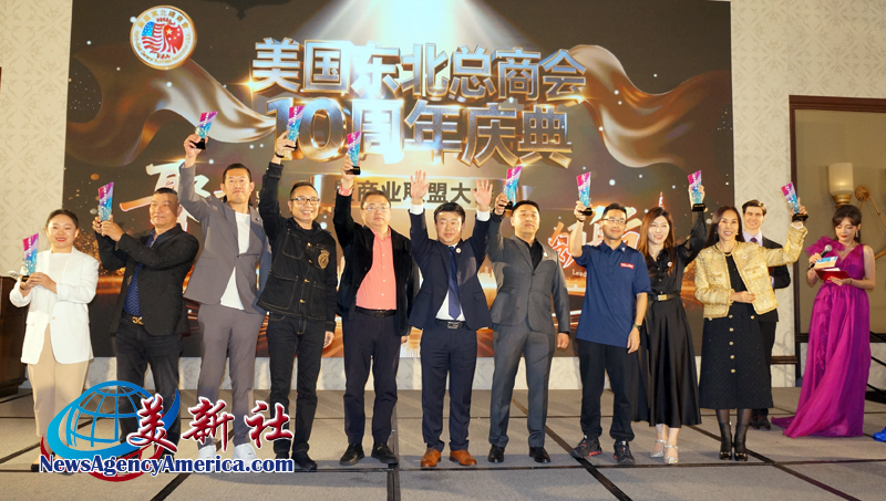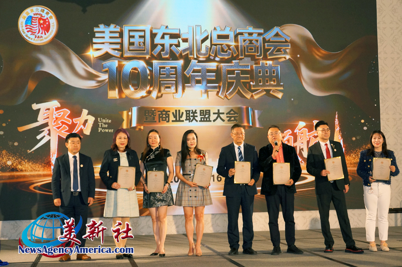 新任会长朱京一(左6)颁奖美国东北总商会『年度战略合作伙伴奖』