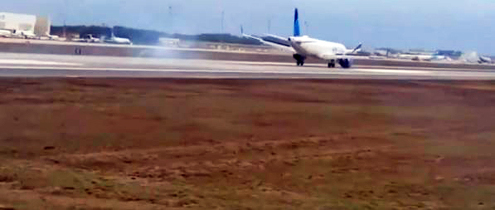 着陆时,后起落架触地(社交媒体视频截图)