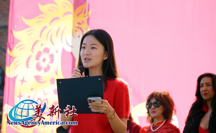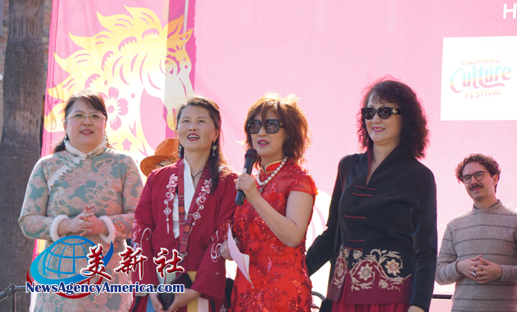 内陆美华协会创会会长 Karen Cheng 携骨干成员登台,向来宾们送上中文的新年祝福。UCR 中国留学生学者协会会长 Annie Li 也表达了深度参与此次庆典大会的荣耀和喜悦,感谢联合主办方、赞助商和机构、参与组织和商户、义工团体等齐心协力,让庆典大会再次成功和圆满。