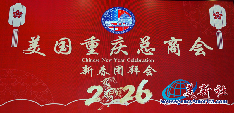 【美新社洛杉矶讯】2026年1月26日晚间,美国重庆总商会2026年新春团拜会于洛杉矶罗兰岗凯悦华达大酒楼隆重登场。