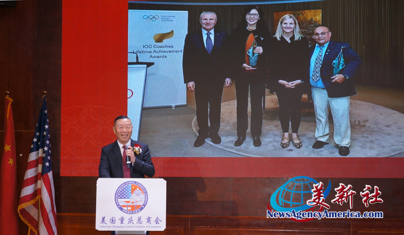 美国重庆总商会 陶维晟会长,向荣获2025年度国际奥委会教练员终身成就奖的郎平指导表达诚挚祝贺