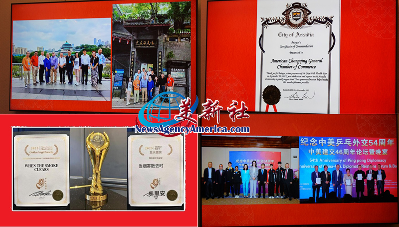 在文化传播方面,商会受邀出席第21届中美电影电视节。本会联合制作的抗战主题纪录片《硝烟散尽·和平永驻》,荣获第21届中美电影电视节‘国际和平贡献奖’,电影是光影的艺术,更是文明互鉴的载体、心灵相通的纽带。让光影之力持续为中美民间友谊注入正能量。
