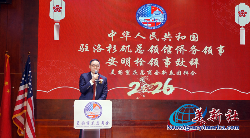 2026年农历马年来临之际,安明栓领事寄语美国重庆总商会,在陶维晟会长的领导和与领导集体的合作下,新的一年取得更多更大的成果。也祝愿美国重庆总商会,行稳致远,马到成功,会务兴盛,万事顺遂。