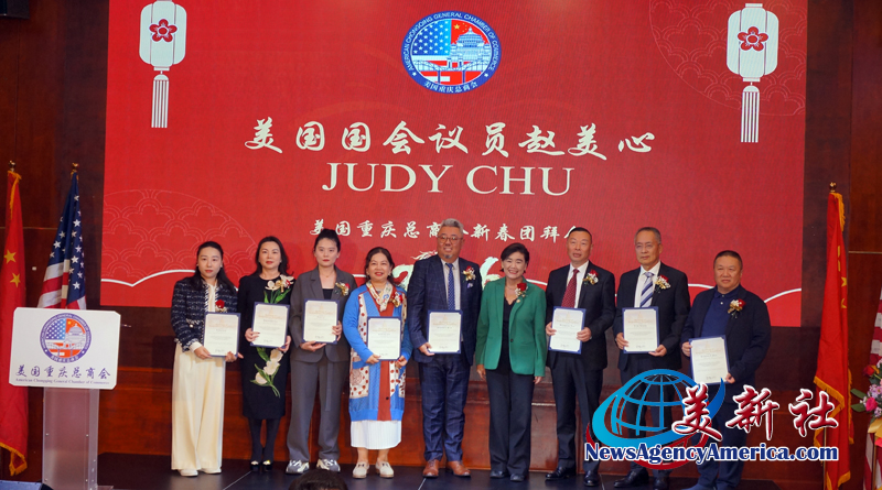 美国国会众议员赵美心(Dr. Judy Chu)也向美国重庆总商会会长 陶维晟、理事长 熊宇镝、秘书长 Stephen Han、财务官 陈渝峰、监事长 荆安平的代表李晓玲、执行官 李正彬的代表陈玲、战略官 李燕的代表胡惟言、执行会长 Didi 陶等,颁发国会贺状。