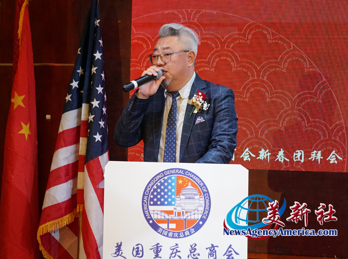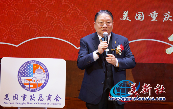 美国重庆总商会 陶维晟会长首先发表欢迎致辞和工作报告。陶维晟会长代表美国重庆总商会,向在座各位嘉宾、商会同仁及长期关心支持商会发展的各界人士,致以诚挚的新年问候与美好祝福。