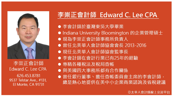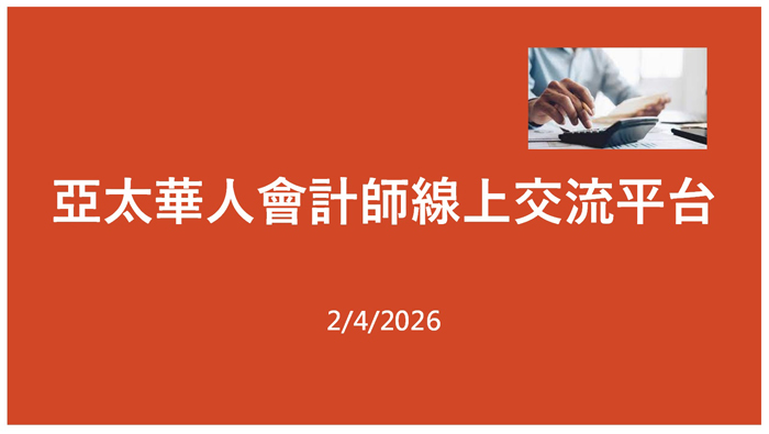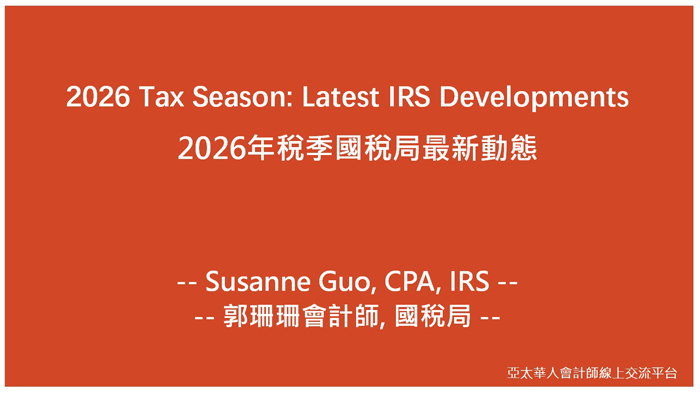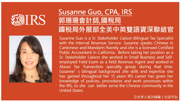 關鍵詞: 亞太華人會計師線上交流平台,張青會計師,Eric Zhang CPA,李崇正會計師,Edward Lee CPA,IRS,郭珊珊,Susanne Guo CPA