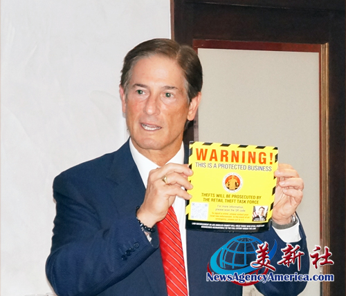 为更好地保护社区和地方商业及企业,洛杉矶郡地区检察长办公室特别印发了警示标志贴纸,期许对可能的犯罪分子产生震慑效果,以达到“防患于未然”的作用。