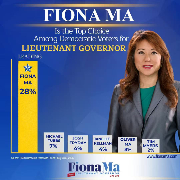 马世云(Fiona Ma)的副州长竞选已获得来自劳工组织、社区团体与民选官员持续增长的强力支持。她已赢得 30多个主要劳工工会背书,代表全州 超过300万名劳动者,涵盖建筑工会、医护人员、公职人员与服务业从业者等多个领域。