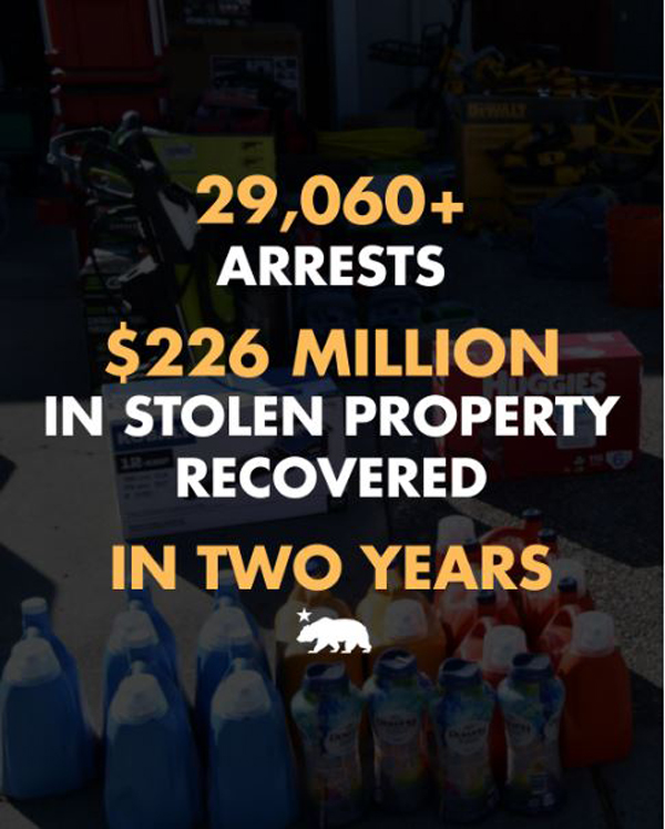 2023年,作为加州公共安全计划的一部分,州长宣布了加州历史上规模最大的打击有组织零售犯罪的投资。通过州和社区矫正委员会(BSCC),打击有组织零售盗窃的拨款已向 38 个执法机构提供了超过 2.42 亿美元的资金,用于购买新设备、开展强化执法行动、招聘新员工以及与零售业建立合作关系。