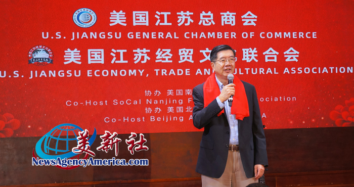 作为江苏两会的永久名誉会长、美国南加州华人华侨联合总会会长蔡成华致辞表示,从创办美国江苏总商会至今,见证了江苏两会从无到有,从小到大的发展历程。大家身在美国,心系家乡,在各自的领域打拼奋斗,为美国的社会和经济的发展,为家乡的建设发展,为江苏与美国两地的经贸往来、文化互鉴等方面,做出自己的贡献。
