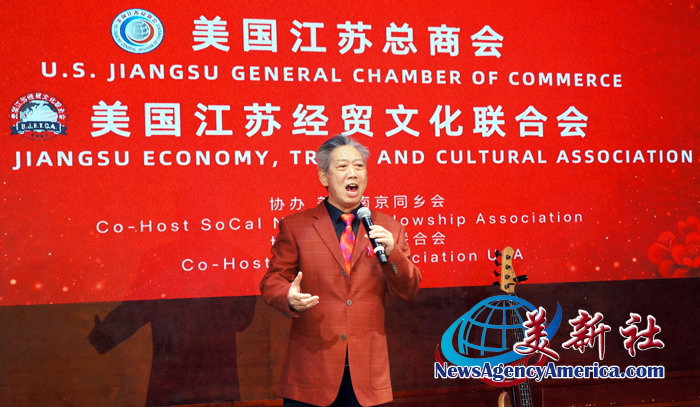 美国南加州华人社团联合会主席张勇,美国南加州华人社团大联盟主席林淦花女士,美国鹰龙传媒总裁苏彦韬,美国加州企业家协会会长陈慧碧女士,美国北京联合会荣誉会长李红律师和会长李相如律师,美国南京同乡会会长洪飞,也通过热情洋溢的致辞,表达了农历马年中,与江苏两会携手共进,密切合作,互惠双赢,共创辉煌的期待。
