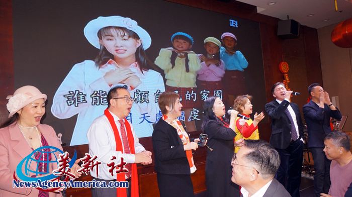 美国南京同乡会的会员表演了民族舞蹈《绿水青山》,江苏两会秘书处骨干也与 Lumi 老师合唱《难忘今宵》,将新春联欢晚会的气氛推向高潮。