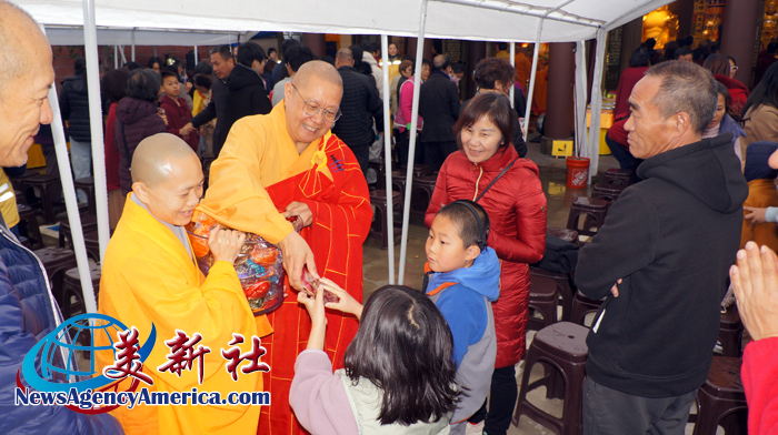 現場不少家庭扶老攜幼參與,在傳統年節與宗教儀軌的交織下,展現佛寺特有的溫馨與虔敬。