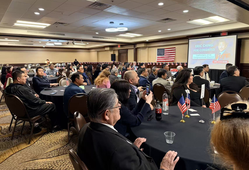 【核桃市讯】2026年2月21日晚,核桃市(Walnut)市议员、前市长秦振国(Eric Ching)在南加州举办大型筹款晚会,为即将于2026年11月实施新选区版图后的国会选举积极布局。活动现场嘉宾云集,近两百位来自政界、商界、教会教友及华人、拉丁裔社区的代表出席,被视为共和党在新设立的联邦第31国会选区展开整合动员的重要信号。