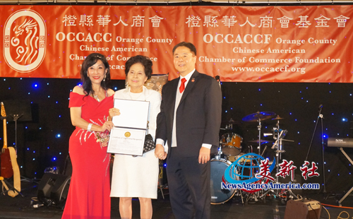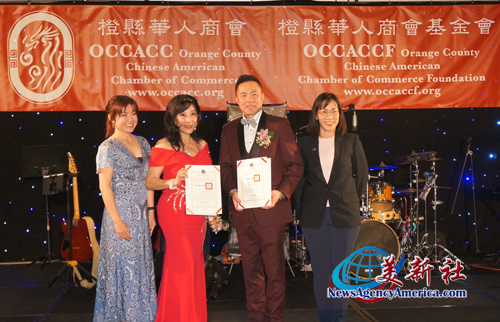【美新社訊】橙縣華人商會(OCCACC)於2月21日在爾灣凱悅麗晶酒店(Hyatt Regency Irvine)隆重舉行2026年年會暨理事就職典禮。當天冠蓋雲集,美國聯邦眾議員劉雲平(Ted Lieu)、加州參議員崔錫浩、加州州眾議員Cotti Petrie-Norris、爾灣市議員劉令淳(Melinda Liu)、經文處副處長陳令欣、橙縣華僑文教服務中心主任蕭脩現場等政要,以及南政、僑民現場。
