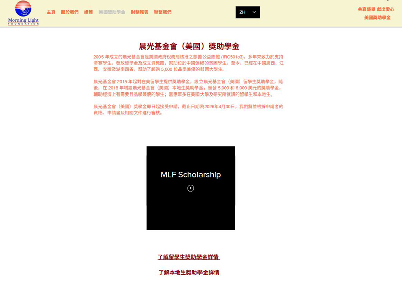 關鍵詞: 晨光基金會(美國), Morning Light Foundation, 留學生獎學金,本地生獎學金