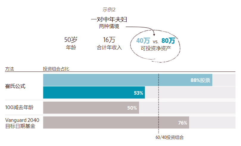 在许多情境下,这个公式给出的结果比常见经验法则更为激进,股票比例更高。