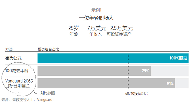 🔰 从以上两个示例可以看出,崔教授(James Choi)的公式并非简单地“鼓励多买股票”,而是基于“终身资源”的概念进行动态调整。对于25岁的年轻职场人而言,由于未来尚有数十年的劳动收入,这部分未来现金流在理论上类似债券,因此当前可投资资产可以承担更高比例的权益类风险。