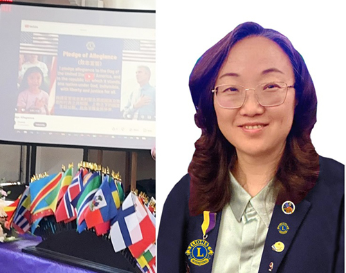 兩位主持人:Lion Elizabeth Yang(蒙特利公園市長、法學博士 楊安立)、Lion Hidy Huo(LA 鑽石獅子會會長 海潮)