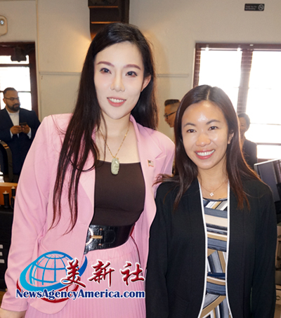 蒙特利公园市市长杨安立(Elizabeth Yang,右)律师,与 Wendy Wang(左)