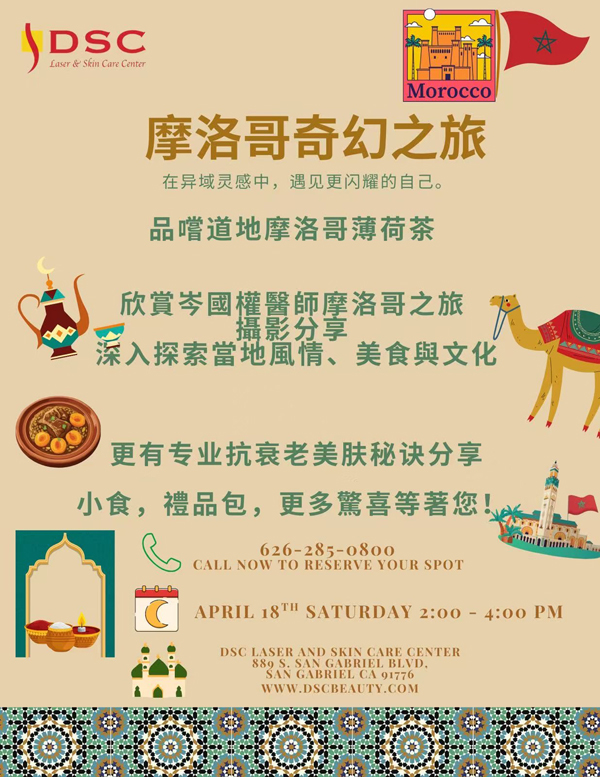 📣📣 特別預告,DSC美芝秀會在4月18日週六下午2點在公司舉辦“摩洛哥奇幻之旅”。