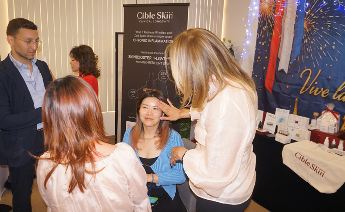 『Cible Skin 悉源地』品牌聯合創始人 Jean Ginefri,北美市場負責人 Jackie Camacho 與 Stéphane Wilmet 亦出席活動。現場特別設置沉浸式產品體驗環節,讓來賓親身感受品牌在抗老 修護、肌膚再生與屏障強化方面的卓越效果,進一步彰顯其在高端定制護膚領域的科研實力。